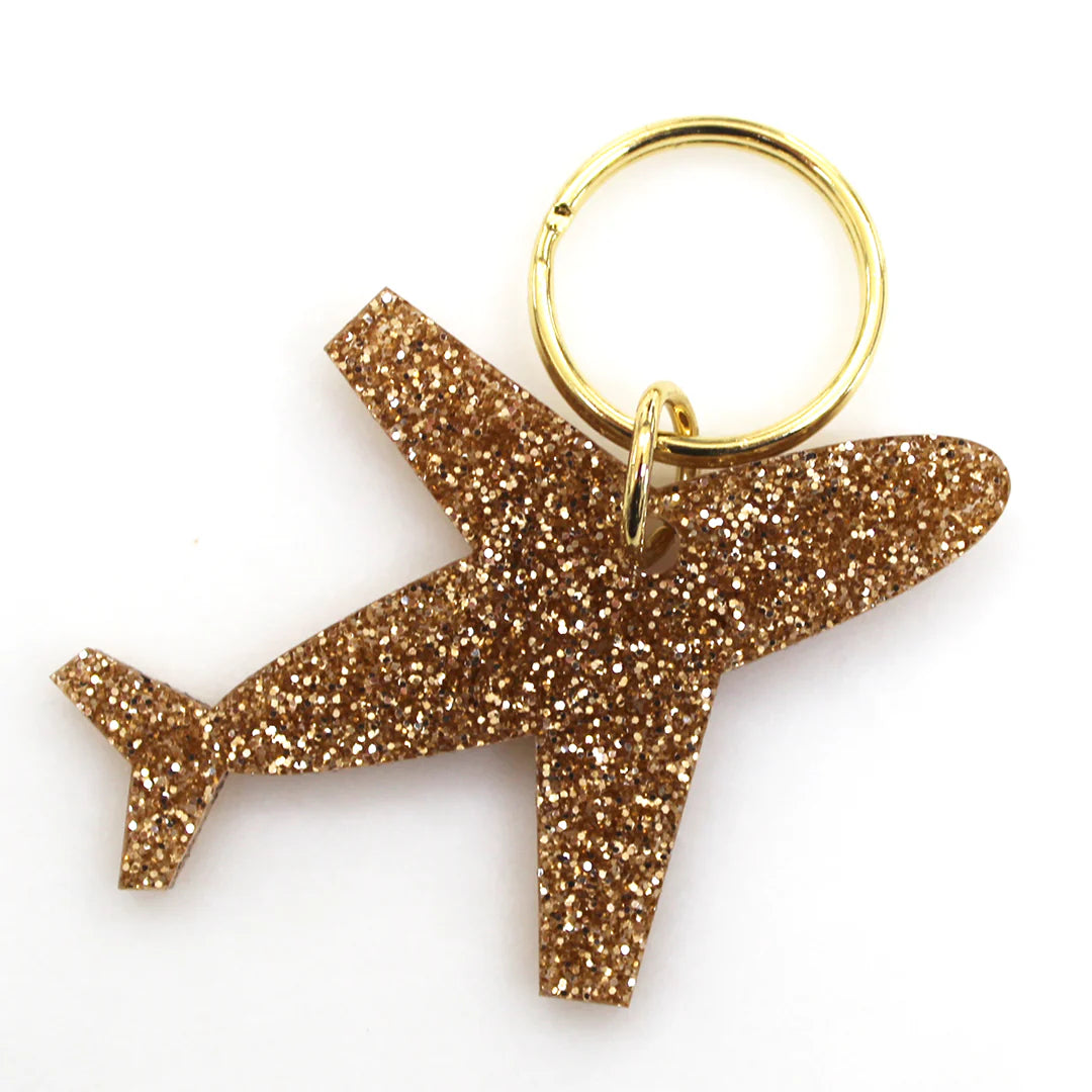 This super glittery keychain is the perfect little touch of personalization for your keys, purse, or backpack. Gold glitter acrylic letter charm is approximately 1x2.5" center-set with a gold key ring.