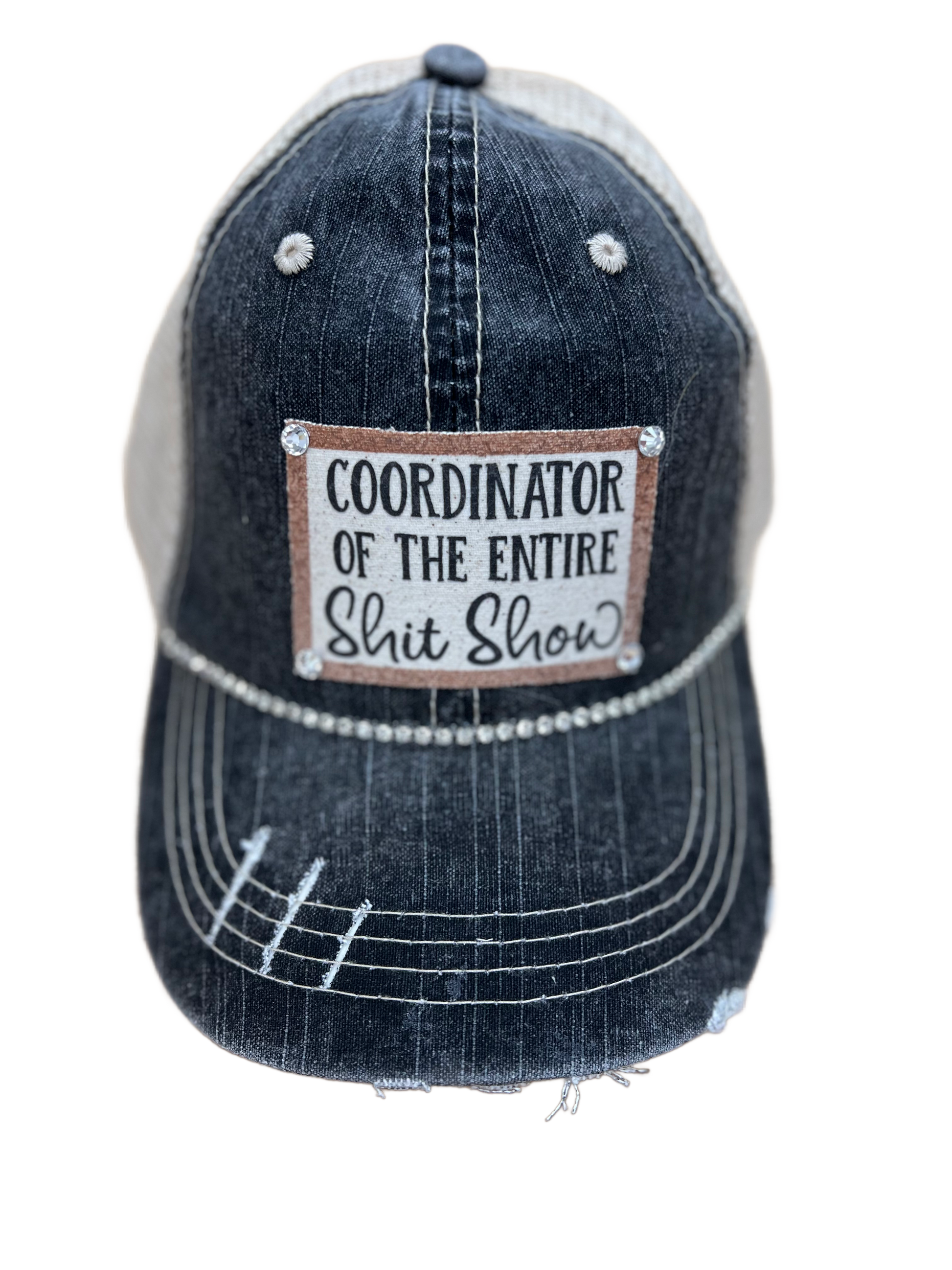 Coordinator Distressed Trucker Hat - Bling / Black Khaki