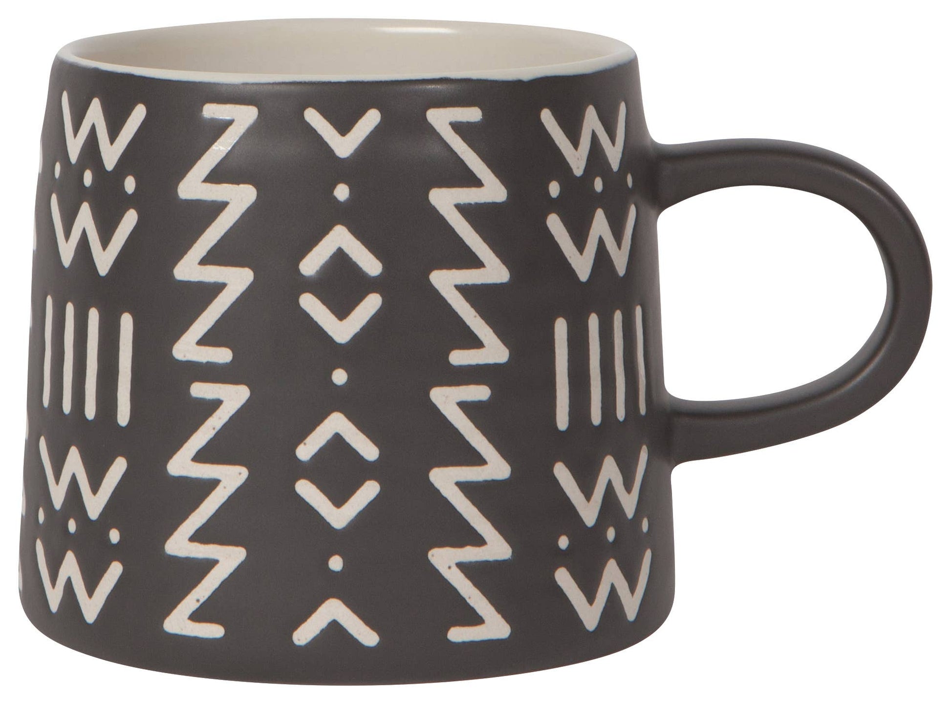 Stylized zigzag lines dancing in perfect symmetry and a high-contrast black-and-white palette lend drama and intrigue to this Ziggy Imprint Mug by Danica Studio. With an organic shape, ribbed texture and engaging patterns, this is a mug that's both a joy to hold and behold. Wrap your hands around a steaming mug of your favorite hot beverage, and slowly savor the moment. The generous 12-ounce capacity provides ample room for the morning's first wake-me-up coffee pour and the relaxing post-dinner tea ritual.