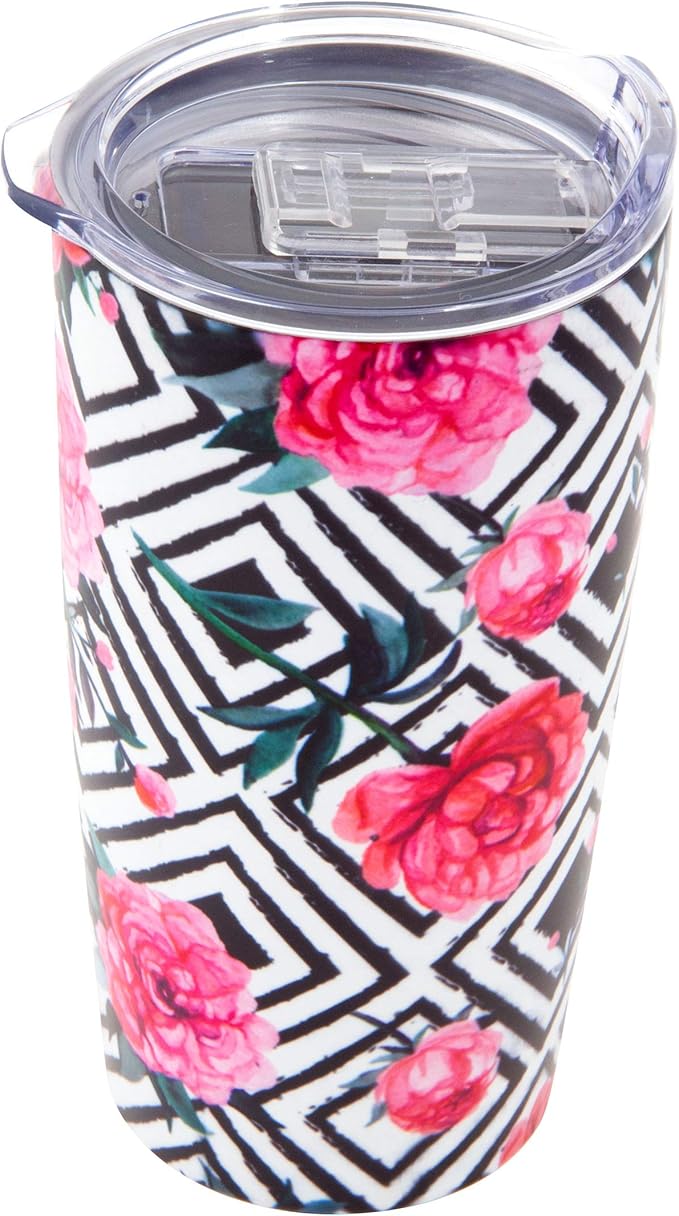 This cute tumbler is made of double-walled stainless steel so your drinks stay cold or hot for up to 12 hours! Holds up to 16 ounces and has a spill-proof lid...which comes in handy for when you're on-the-go! Be sure to handwash this tumbler to keep its colorful print looking cute!