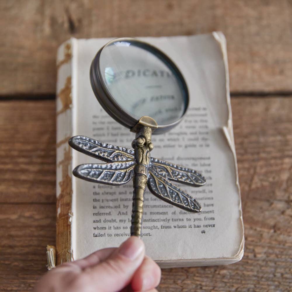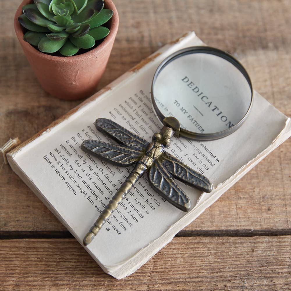 The ideal and stylish desk accessory, our Dragonfly Magnifying Glass is a handy addition to an office. It features a distinguished antique brass finish that boasts a cultivated aesthetic.