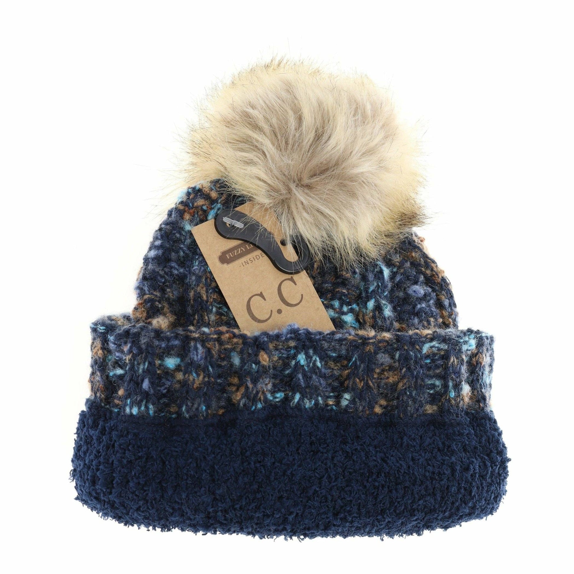 Fuzzy Lined Popcorn Confetti Fur Pom CC Beanie