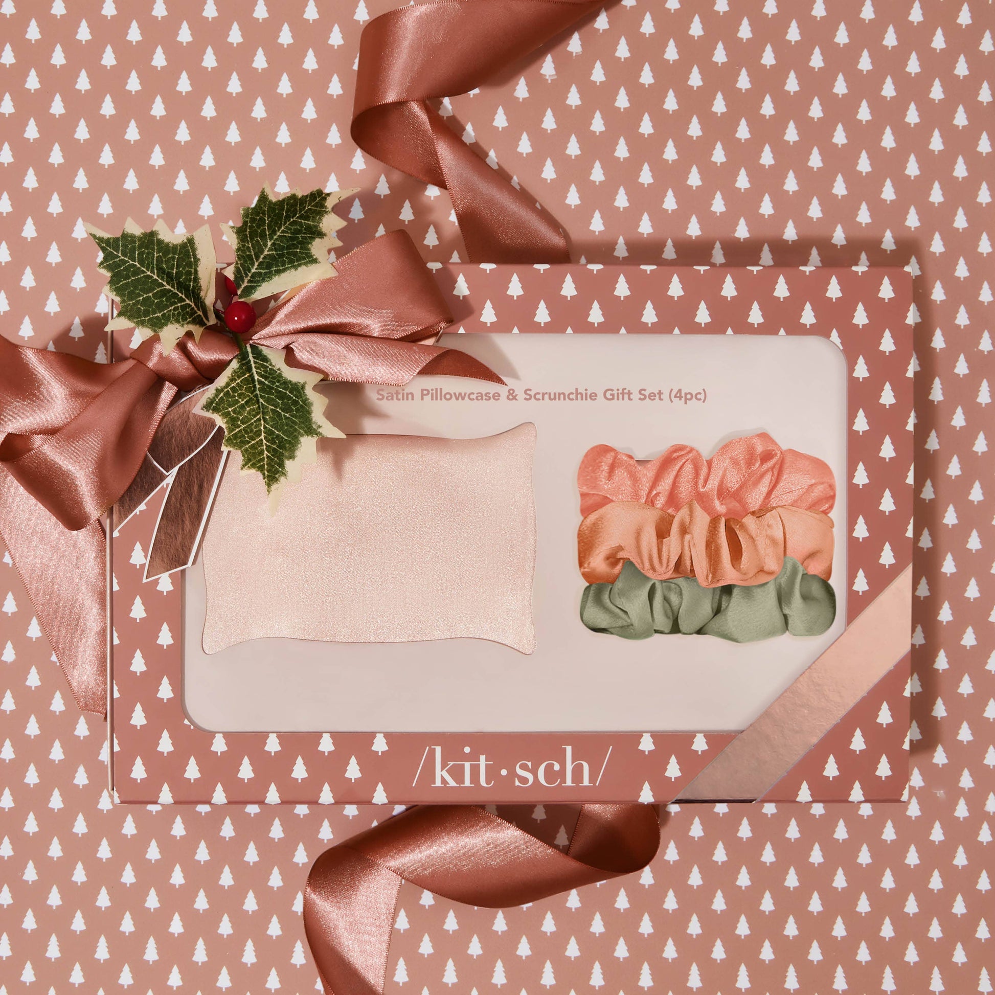 Holiday Satin Pillowcase & Scrunchie 4pc Gift Set