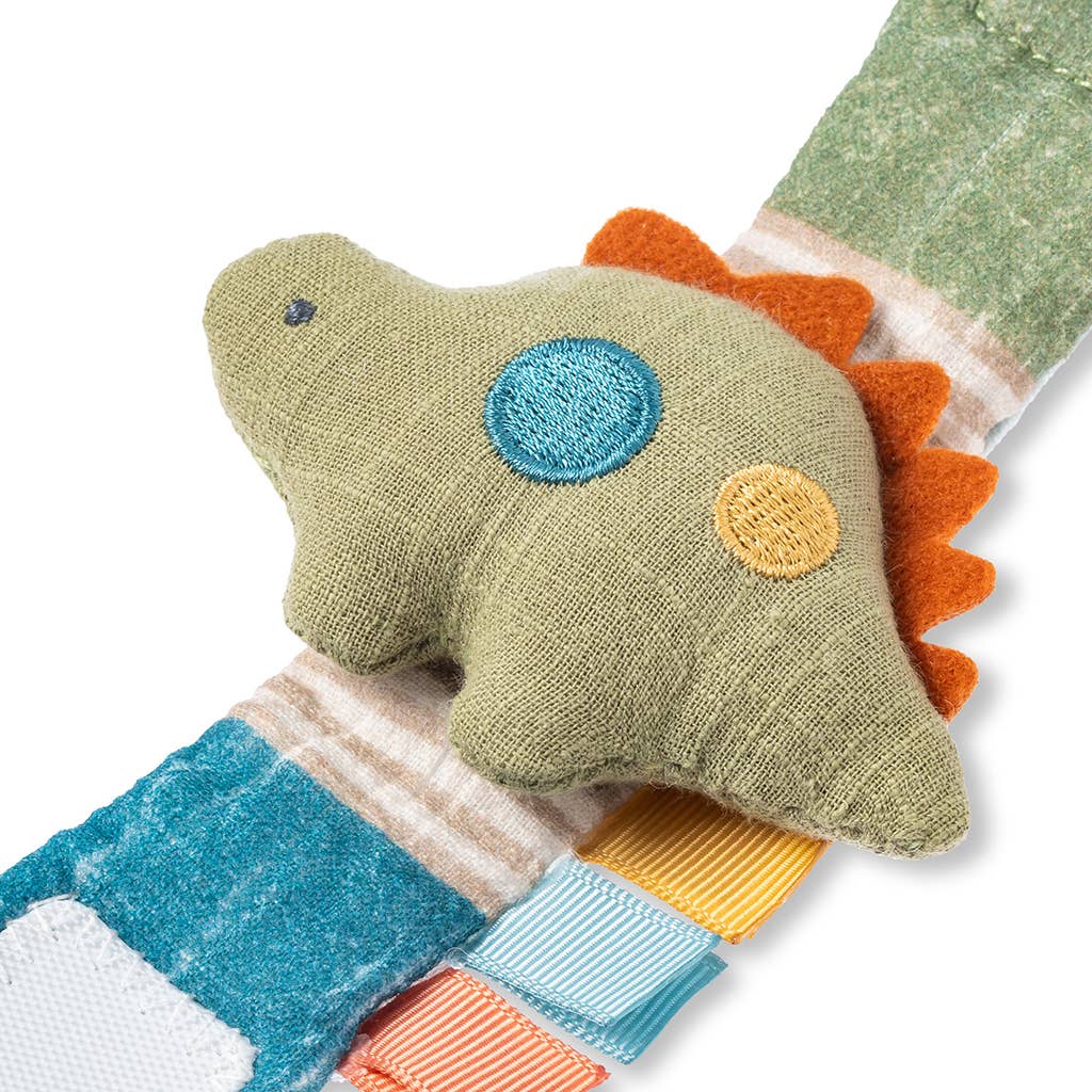 Shake It, Babe! Our Itzy Bitzy Rattle™ wrist rattle is sure to captivate and delight baby with every move they make. Made of soft natural cotton fabric, it easily attaches to baby’s wrist and the gentle rattle sound teaches them cause & effect while encouraging essential motor skills!