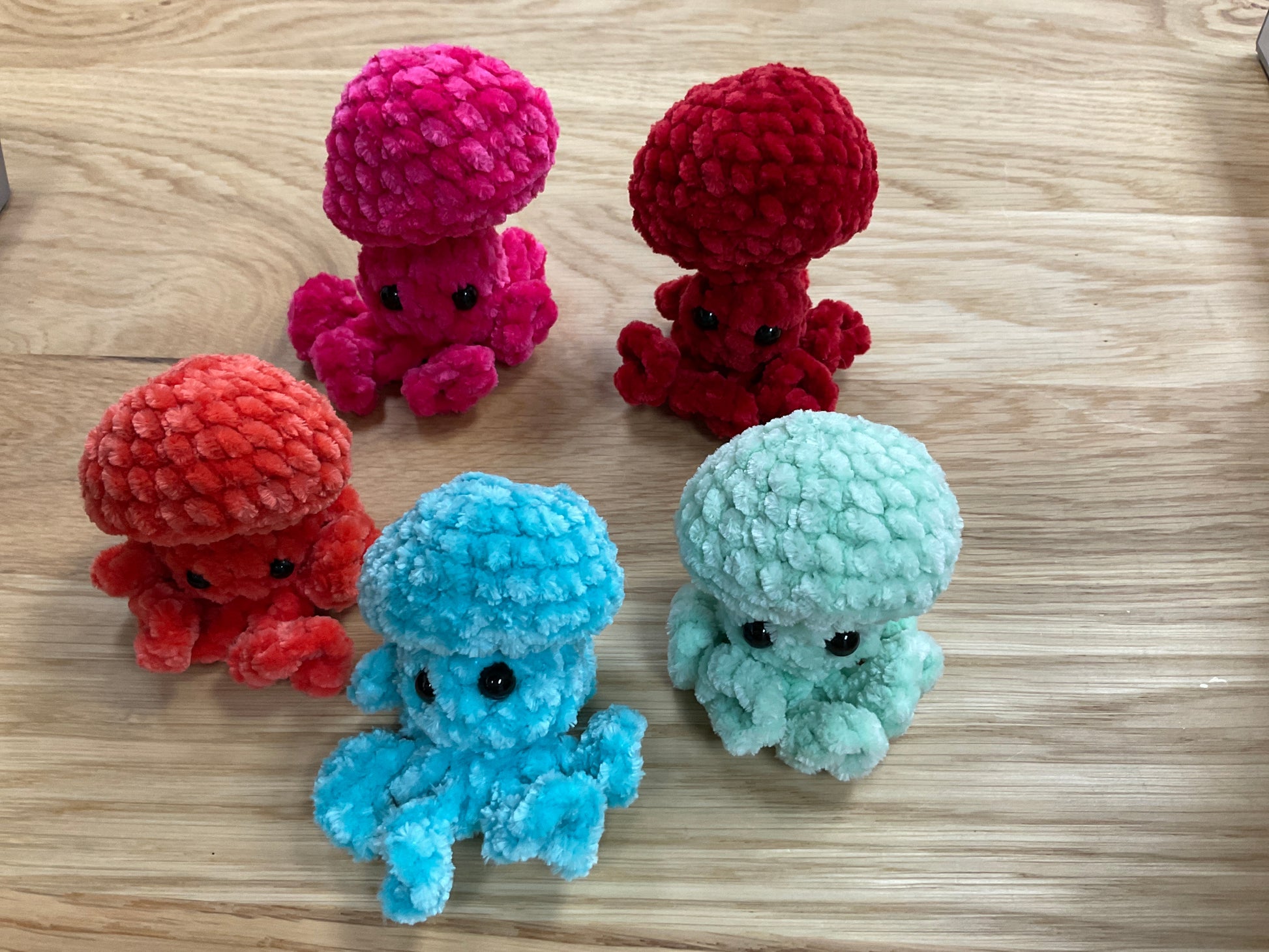 These cute mini jellyfish have heads that you can popup or push down. Great fidget crocheted toy!