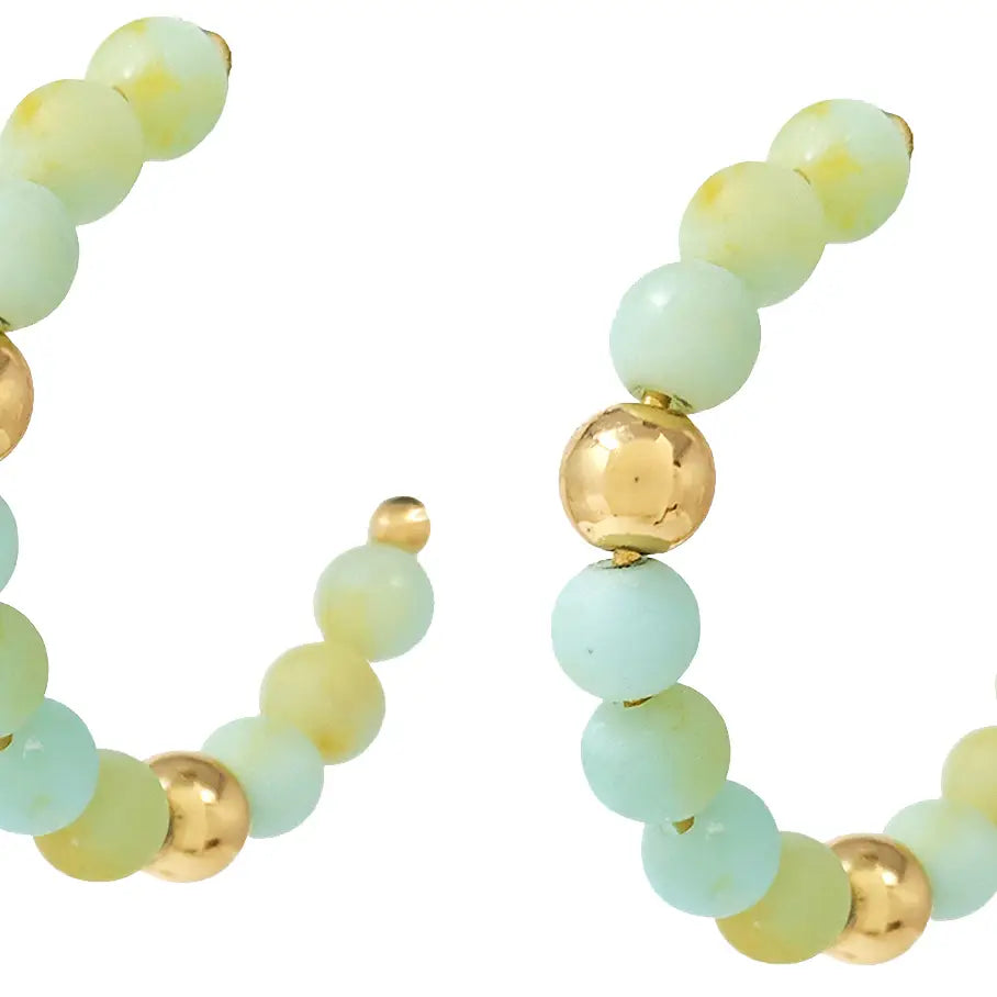 Mint Glass Bead Hoop Earrings