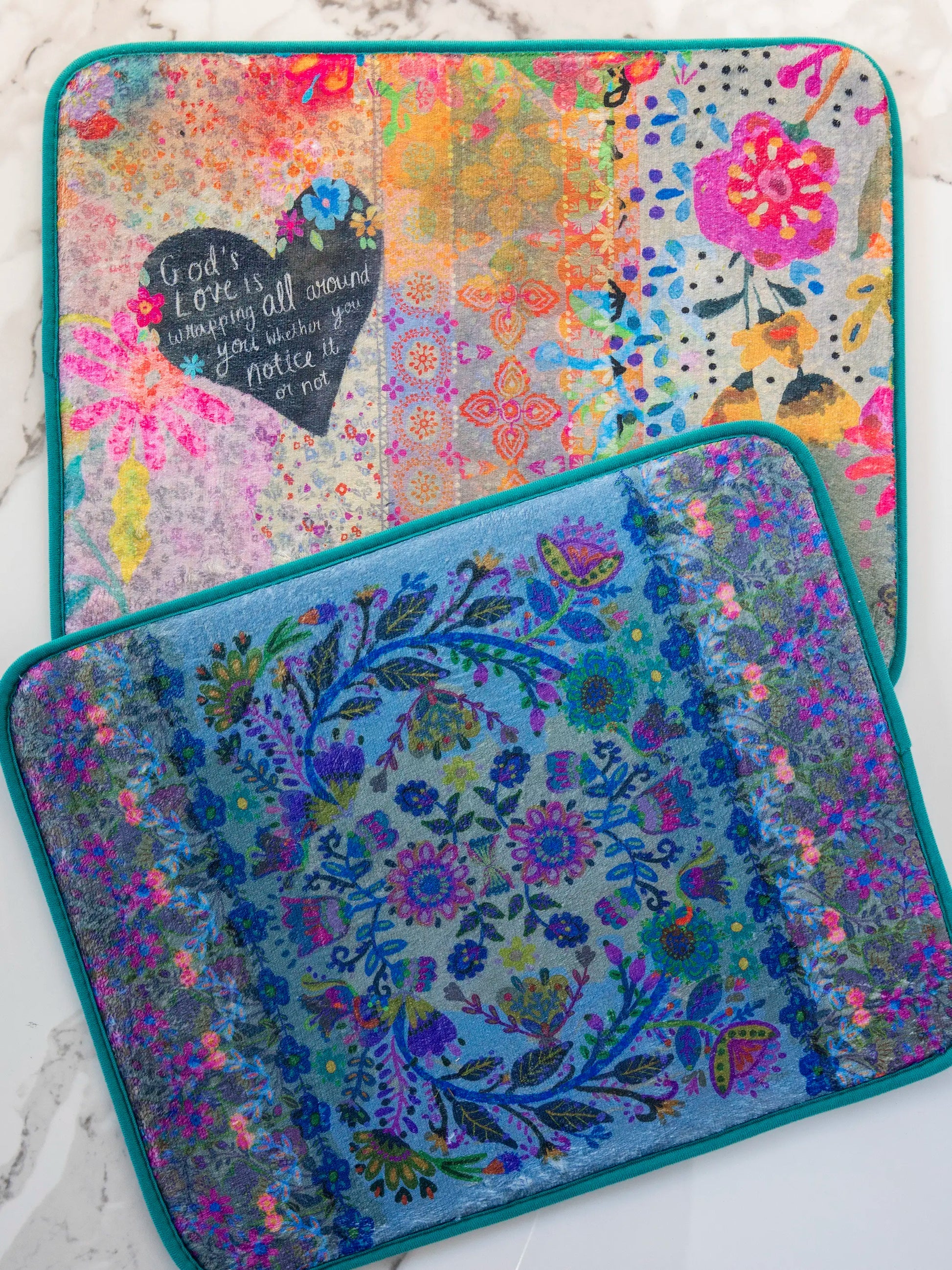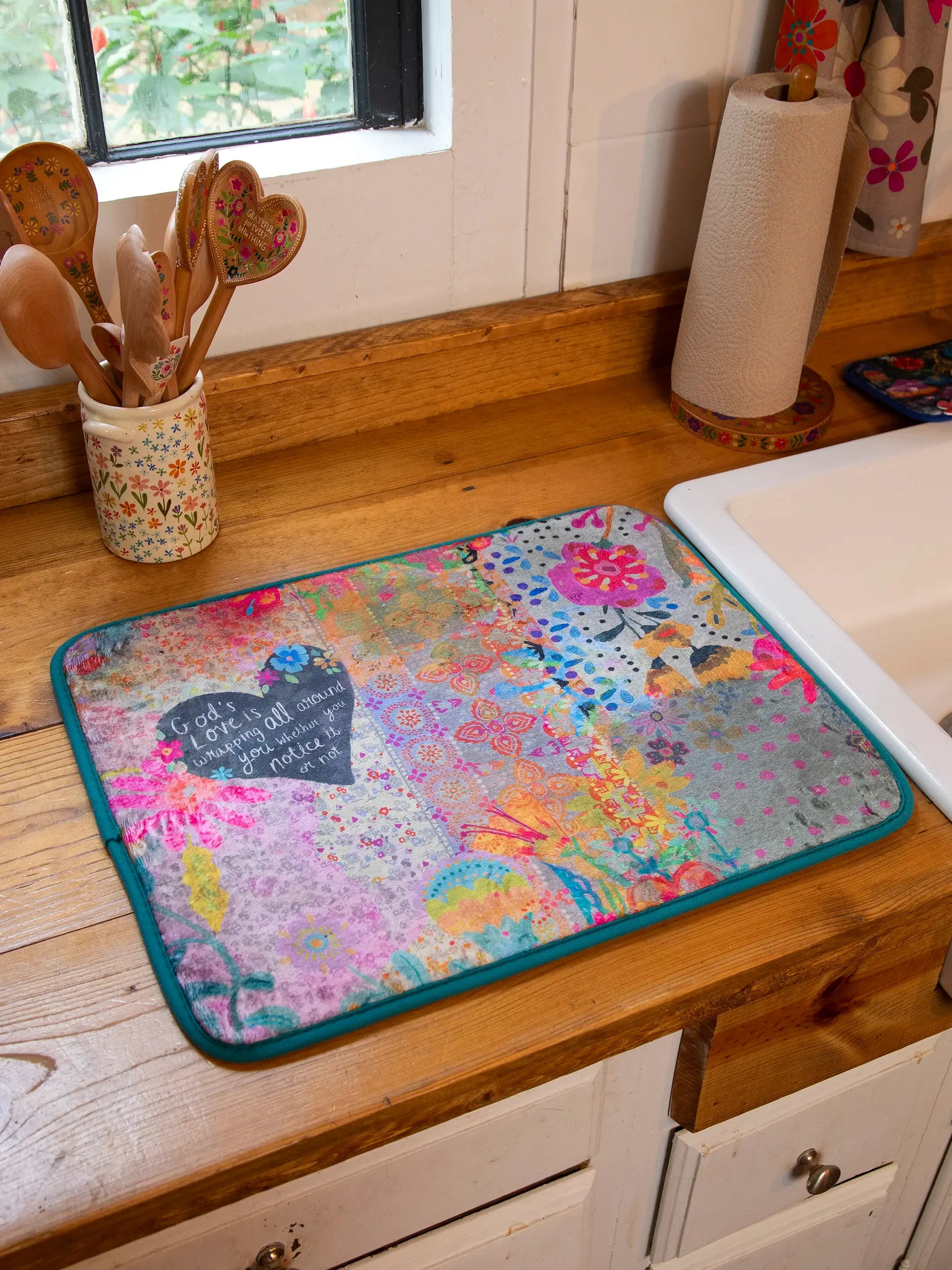 Made from a special cushioned foam to keep your dishes protected and securely in place. It dries super quick, and cleanup is a breeze. Reversible so you get to brighten up your kitchen with TWO designs!