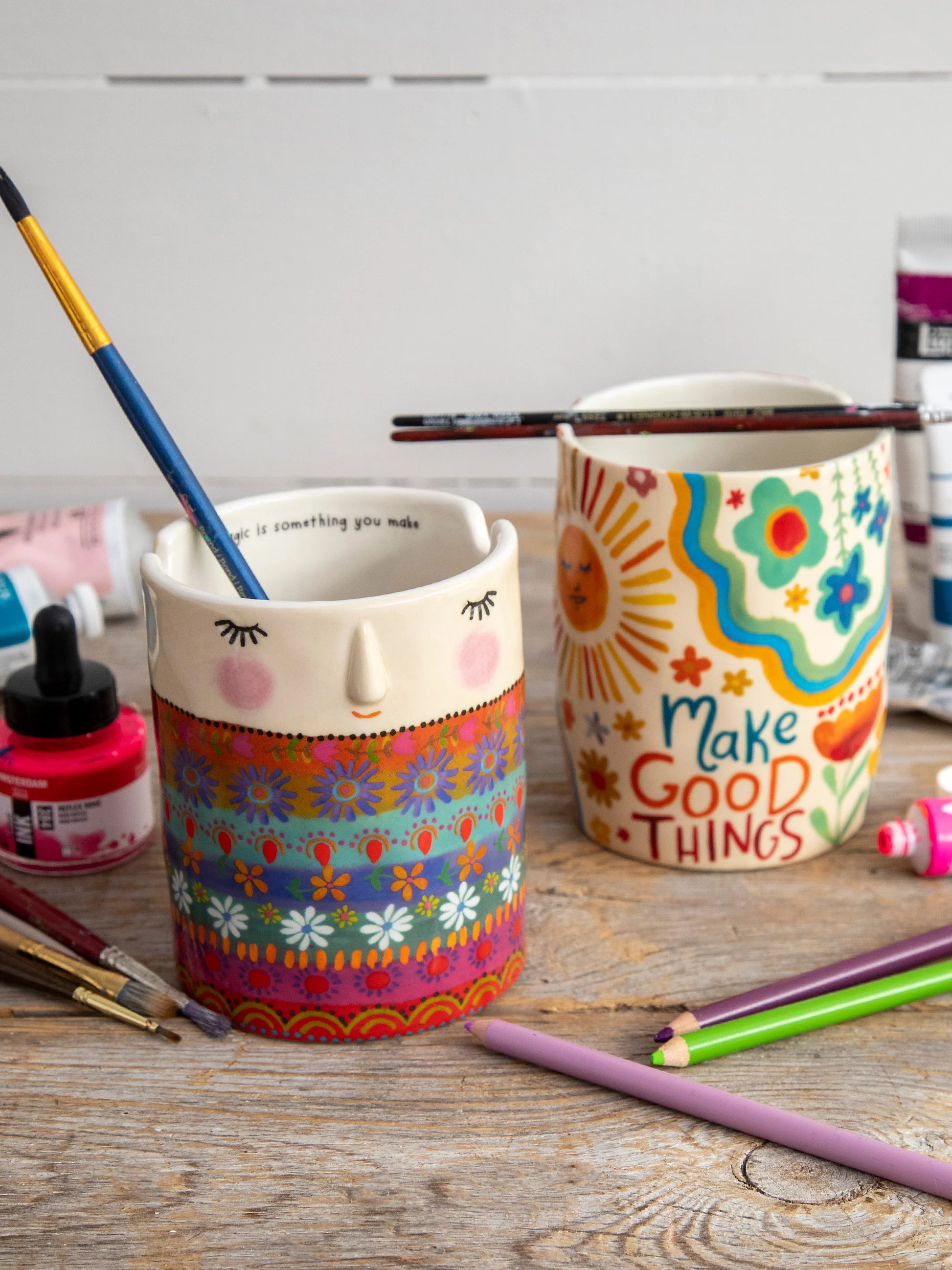 This adorable painter's cup inspires creativity! AND it even has a notch just for your paint brush!