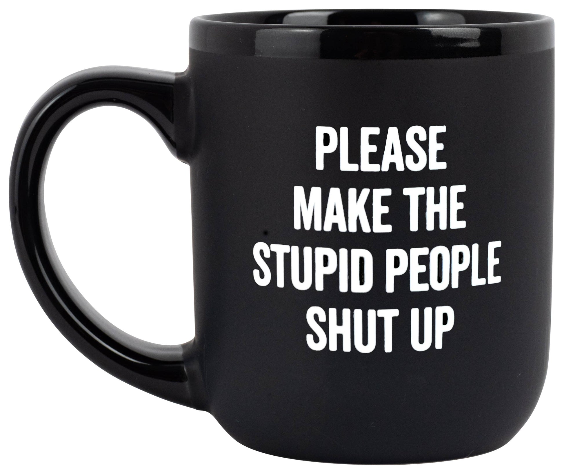 Snark City© Double-Sided Coffee Mug "Please make the stupid people shut up" Make mornings come alive with this fun black coffee mug. Inside, handle & rim are glossy, outside has a matte finish.