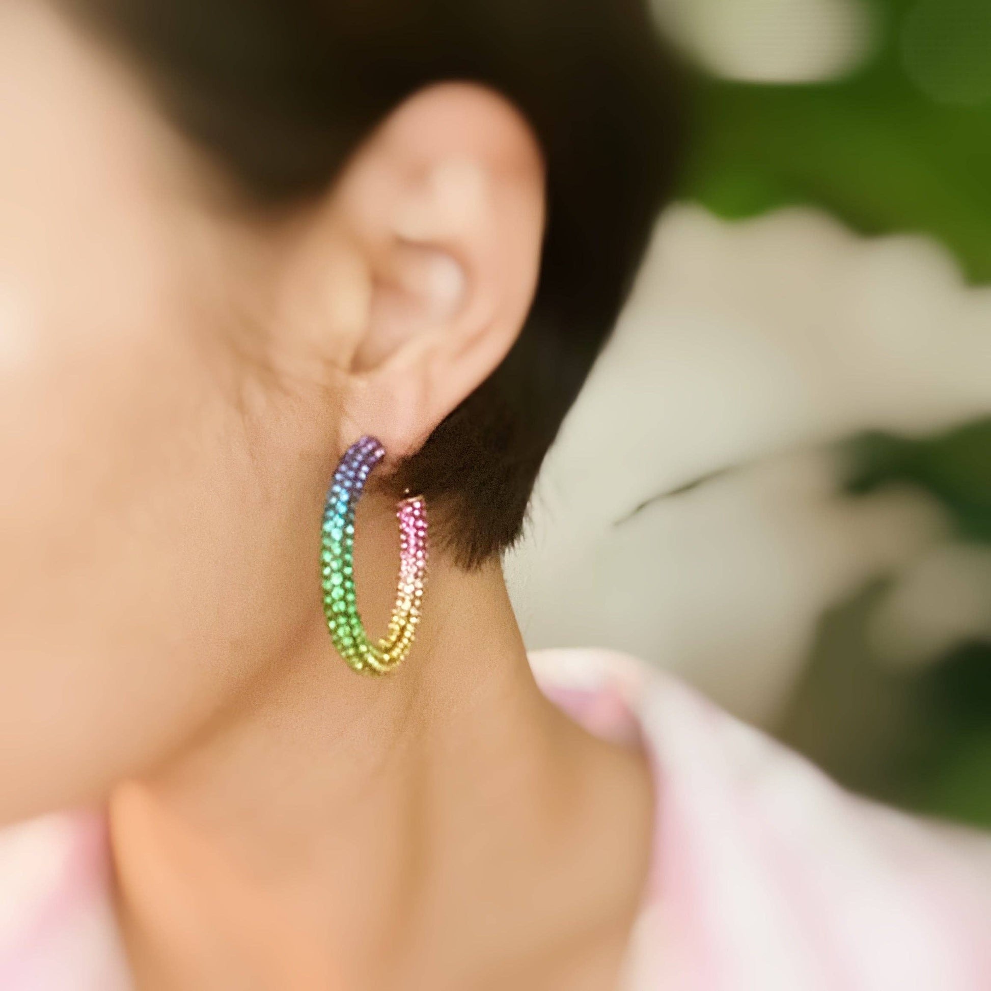 These Retro Bling Hoop Earrings are the perfect accessory to add a bit of sparkle to your outfit. Featuring a classic hoop design, the lightweight earrings make a stylish statement without weighing you down. Whether you're dressing up or down, these earrings are the perfect size for any occasion.