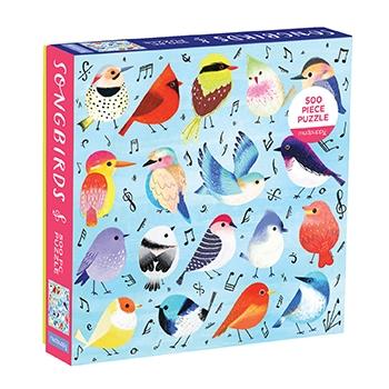 Songbirds 500 Piece Family Puzzle from Mudpuppy features 18 colorfully illustrated birds. Mudpuppy puzzles are packaged in matte-finish sturdy boxes, perfect for gifting, reuse, and storage.