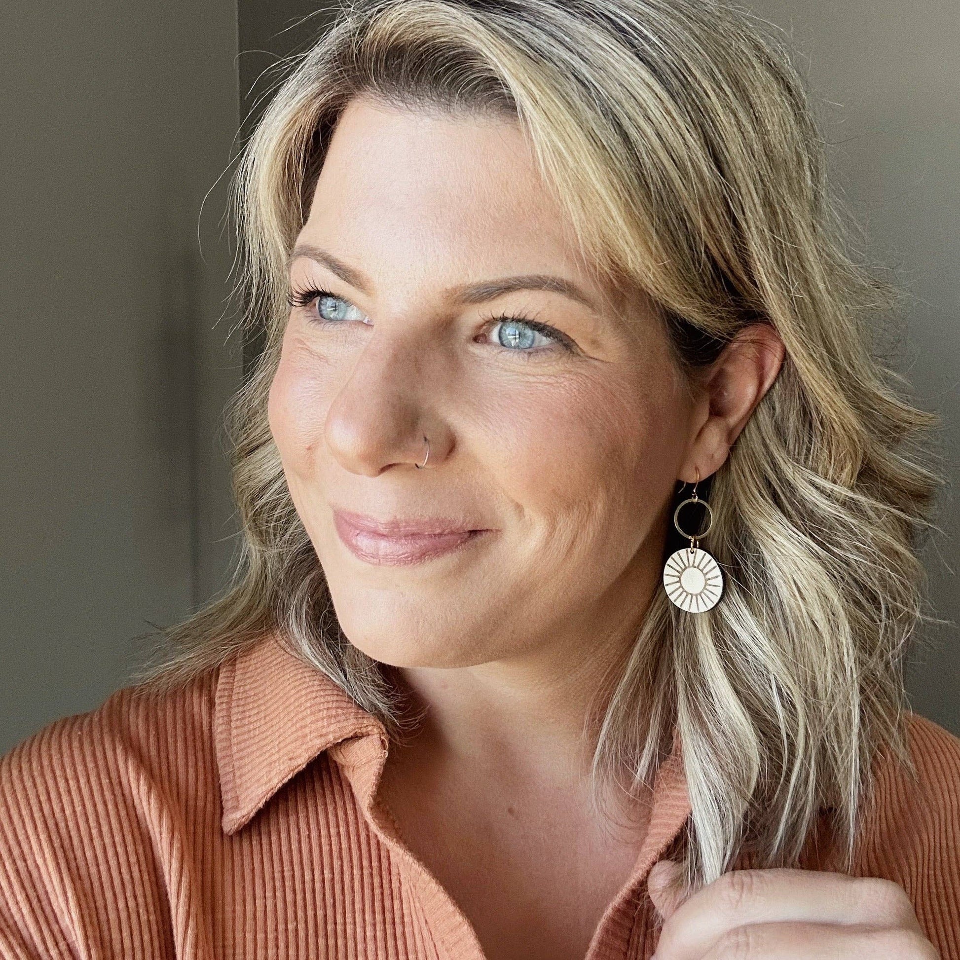 - Made from hand painted basswood, raw brass, and hypoallergenic gold plated brass ear wires.