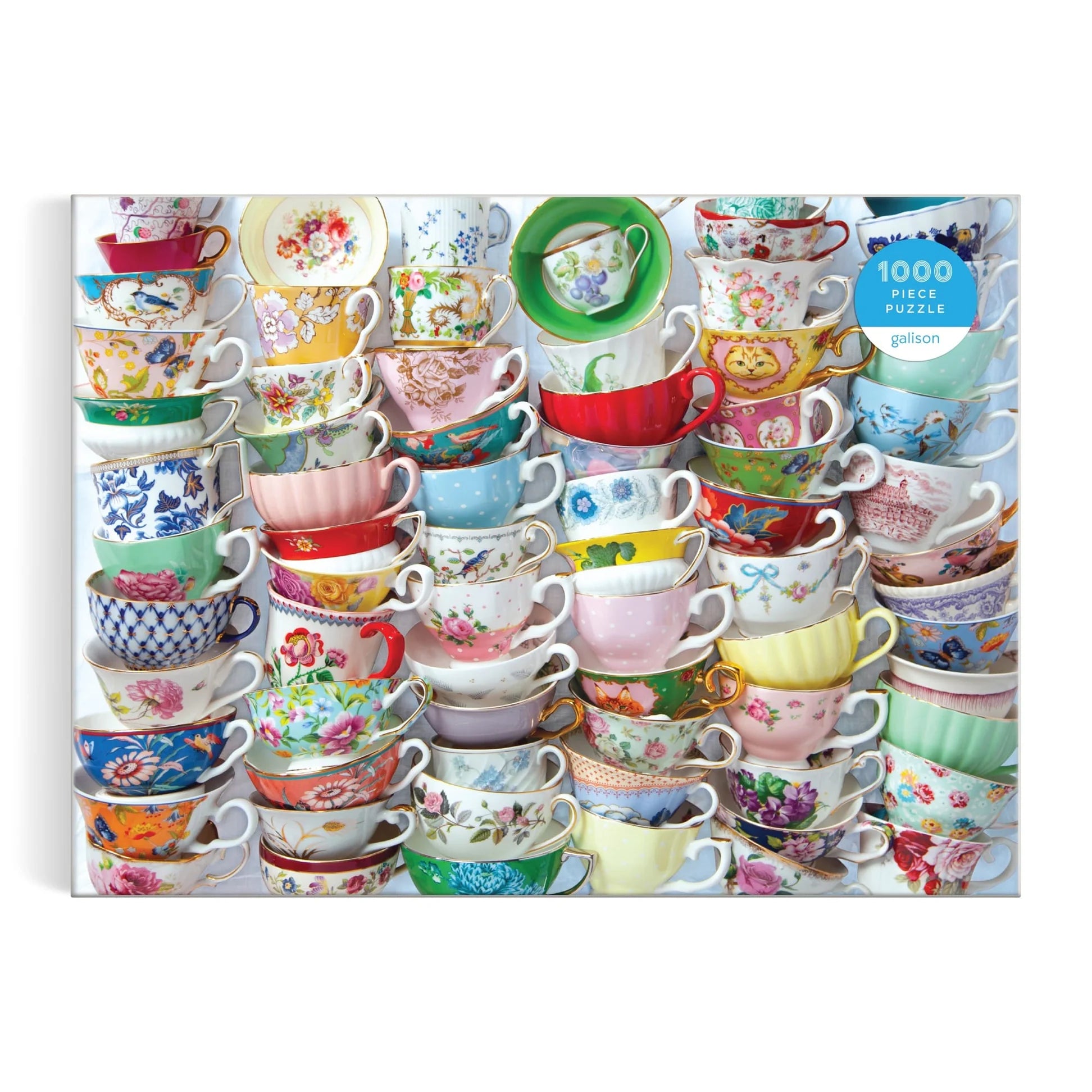 Teacups 1000 Piece Puzzle features a Regency core style mix of vibrant teacups, with patterns and details to make any tea party enthusiast proud.